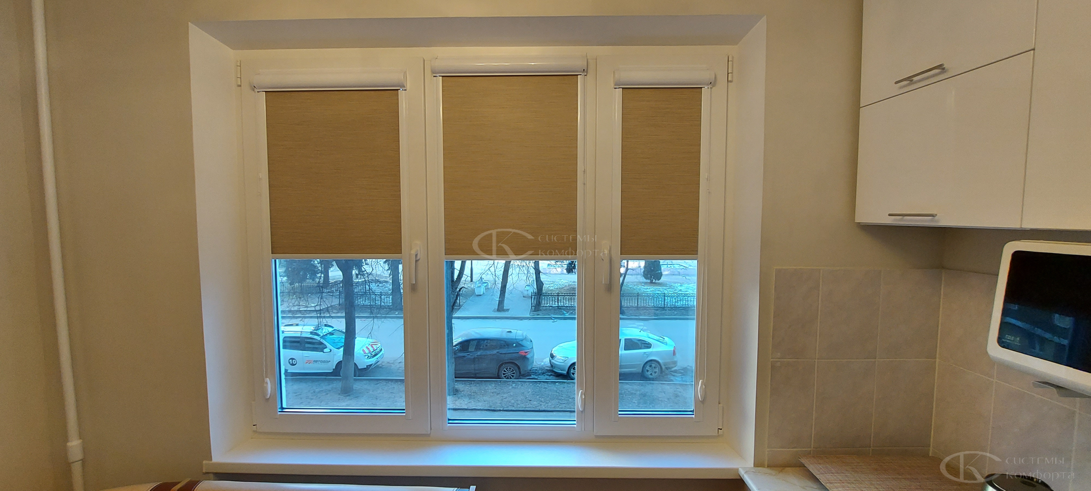 Эти системы представляют собой цельное полотно из ткани, которое наматывается на вал, расположенный вверху оконного проема. Управление осуществляется с помощью цепочного, пружинного механизма или современного электропривода, что делает процесс регулировки невероятно легким и удобным. Их главная «фишка» – это аккуратный сверток вверху и абсолютно ровное, натянутое полотно при опускании, что создает безупречно строгий и лаконичный вид.