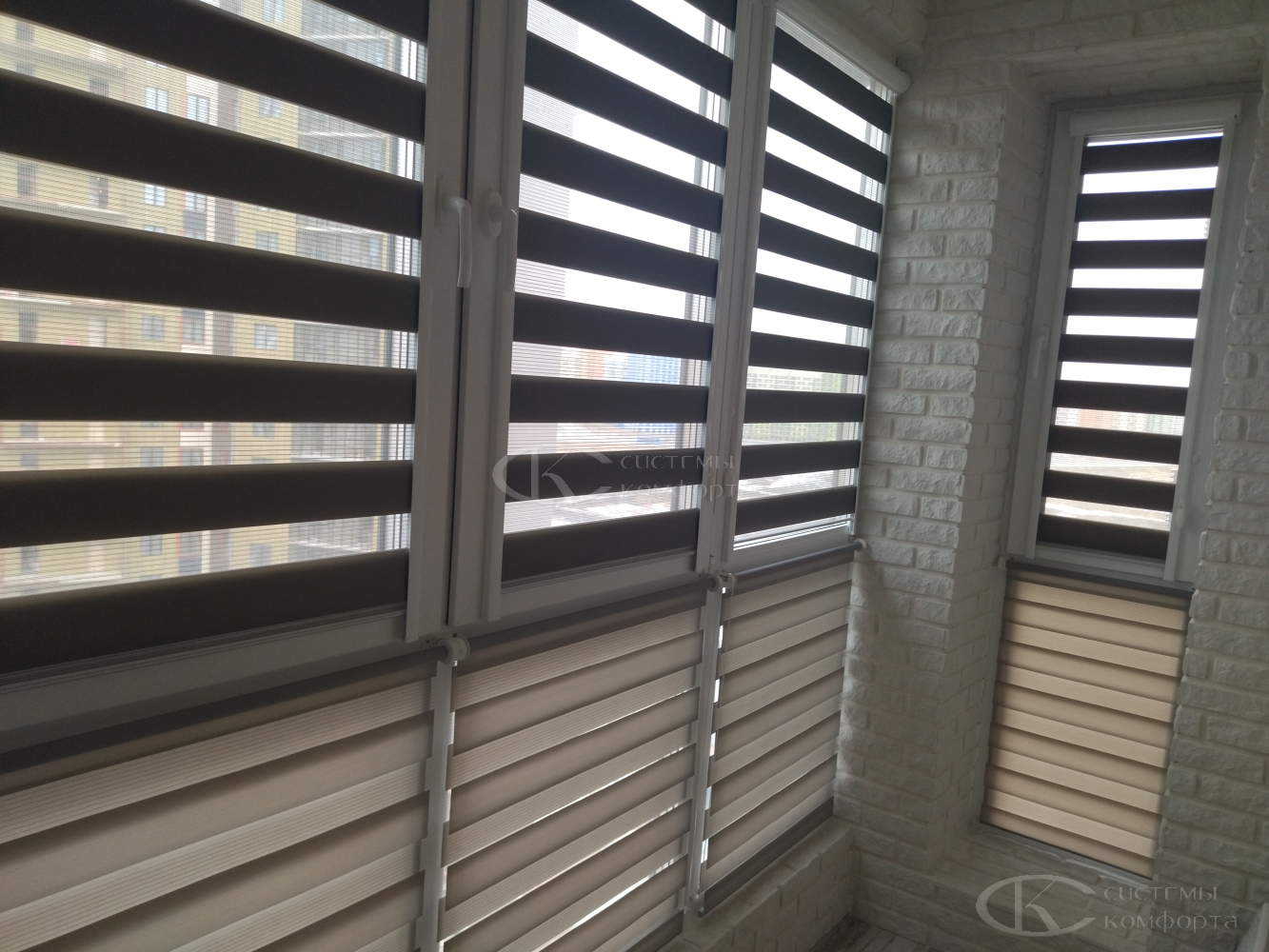 - Балкон/лоджия: защита от солнца и любопытных взглядов. Горизонтальные (алюминиевые, ПВХ) или рулонные.