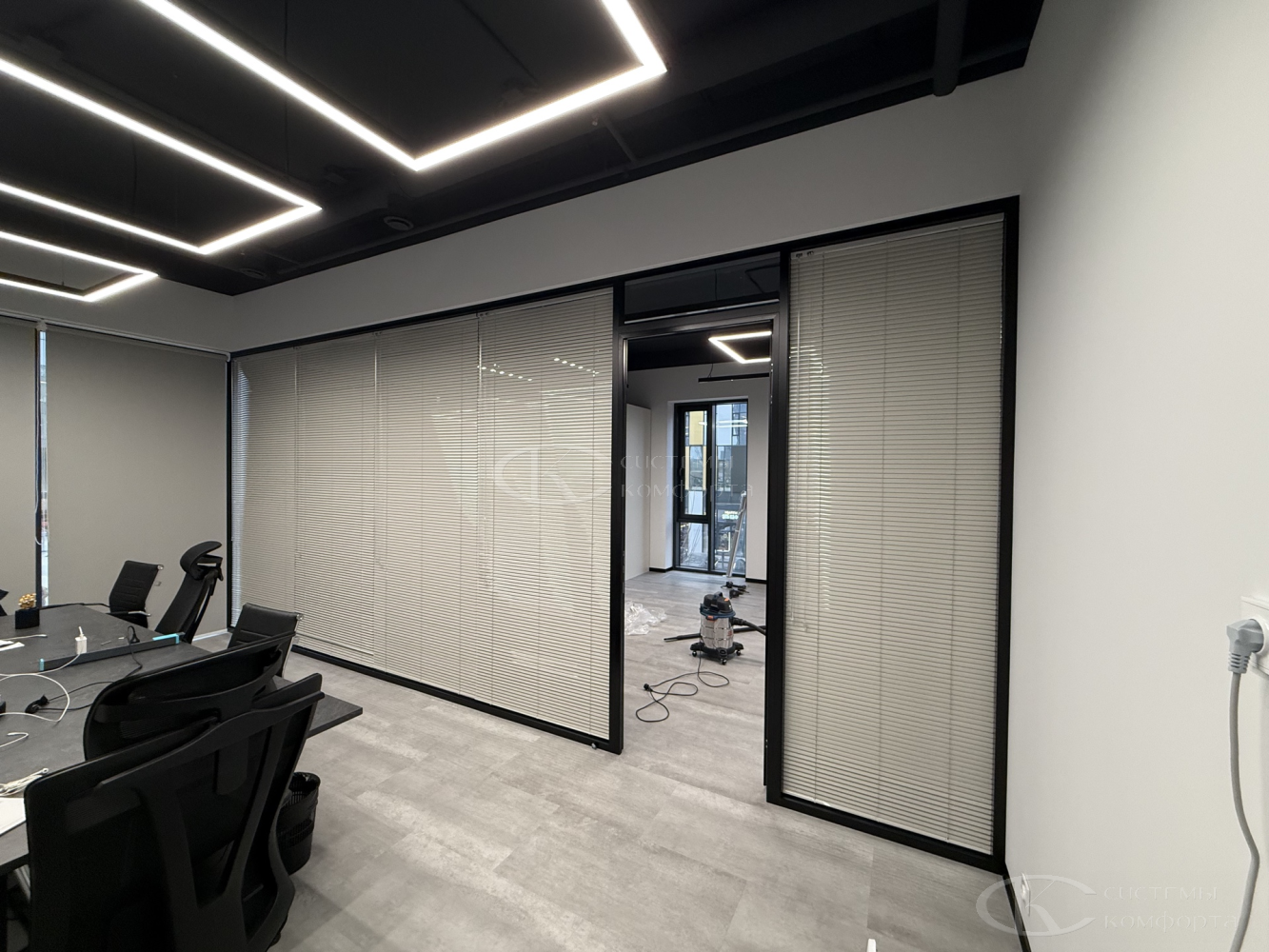 Компания «Системы комфорта» предлагает горизонтальные жалюзи с цветными алюминиевыми ламелями и перфорацией (опционально). Краска, которая используется в производстве, сертифицирована (экология), не выгорает на солнце и не истирается весь срок службы изделия.